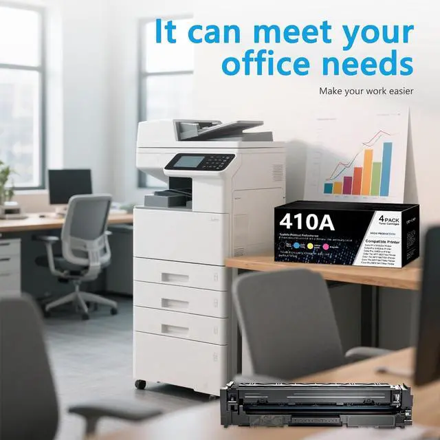 Plug-and-Play Chip: The 4-piece high-capacity 410a toner cartridge set comes with built-in chips, allowing direct installation into the printer right out of the box. No extra disassembly or chip installation is needed, saving both time and effort