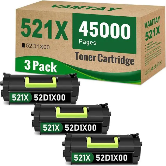 What are in the box: Includes 3 Black 52D1X00 522X Toner Cartridges