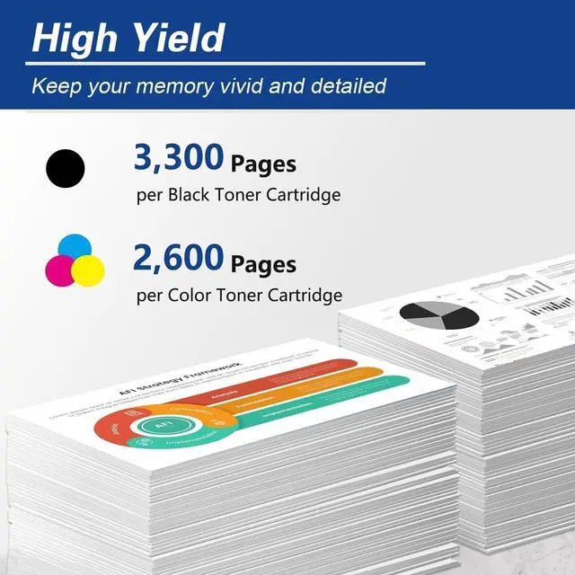 High Page Yield: Up to Black is 3,300 pages per black TN227 cartridge and Color is 2,600 Pages per color TN227 cartridge (Letter/A4, at 5% Coverage)