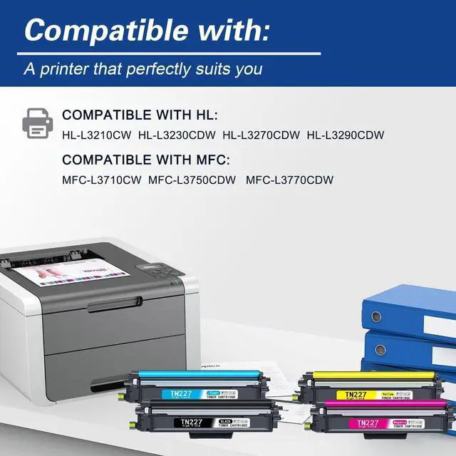 Delivers Sharp Texts, Crisp Images, and Stable Compatibility, No Fading, No powder leakage, No StreakOur TN223 TN227 Toner provides the printing experience vital for your printing productivity