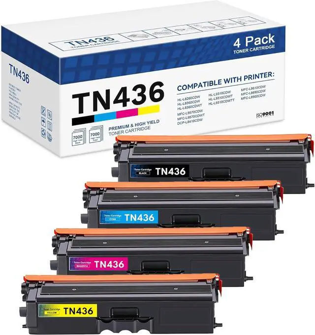 Package Contents: 1 x Black TN436BK Toner, 1 x Cyan TN436C Toner, 1 x Magenta TN436M Toner, 1 x Yellow TN436Y Toner (4 Pack )