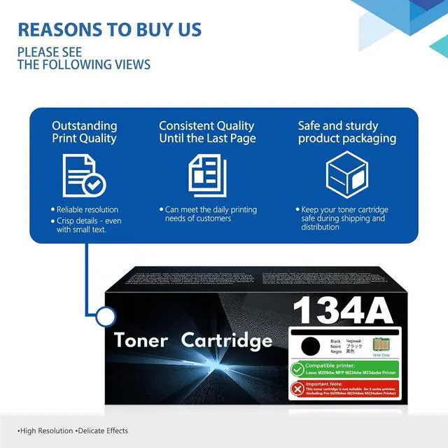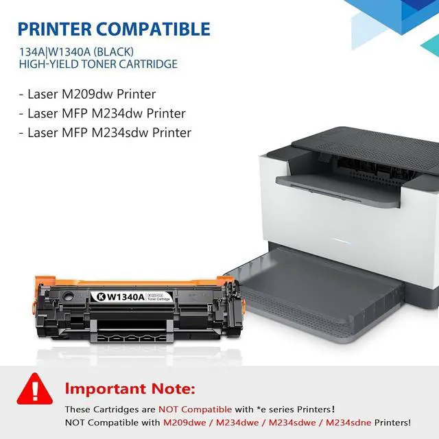 NOTICE: 134A Toner Cartridges are Not compatible with E-series printers, like M209dwe M234dwe M234sdne M234sdwe printer