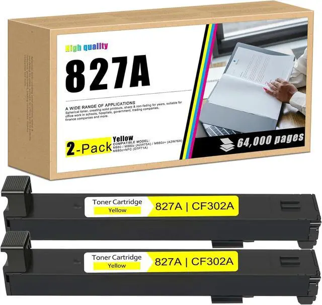 What's in the box: 2 new pack 827A Yellow Toner Cartridge With Chip (CF302A) , for a total of two cartridges