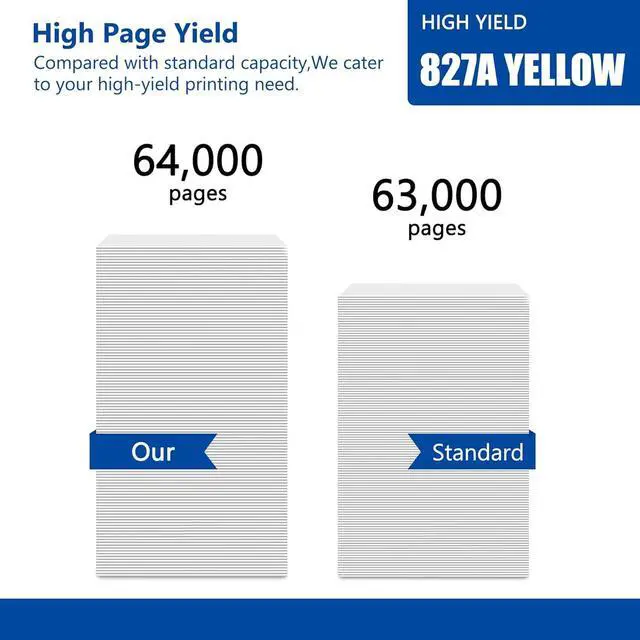 Use Replacement for HP 827A Yellow Toner Cartridges to eliminate toner leaks and premature failures