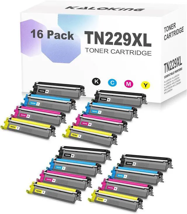 Package Contents: 16 Pack (4Black+4Cyan+4Magenta+4Yellow) TN229 TN-229 TN 229 TN 229XL Toner Cartridges