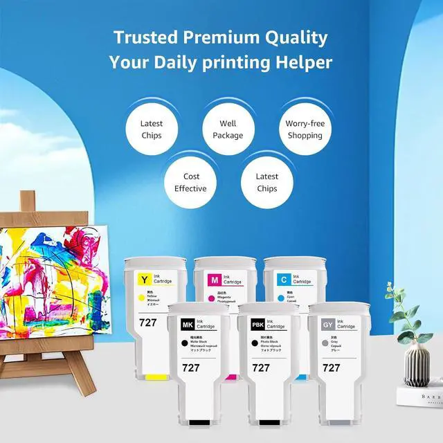 Vibrant Color ReproductionCompatible 727 ink cartridges produce exceptionally bright and vivid colors, making them ideal for high-quality photo printing and graphic designs that require a wide color gamut.