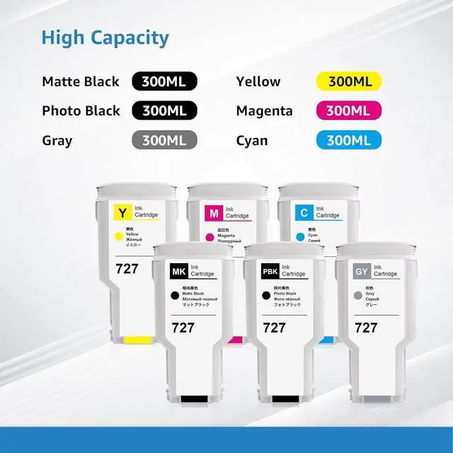 Package Contains6 Pack 727 ink cartridges ( 1x Photo Black, 1x Matte Black, 1xGray, 1x Cyan,1x Magenta,1x Yellow)