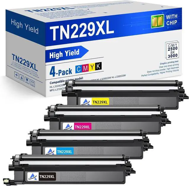 Package Included: Replacement Brother TN229XL Toner Cartridges; Compatible with Brother TN229XLBK TN229XLC TN229XLM TN229XLY 4-Pack