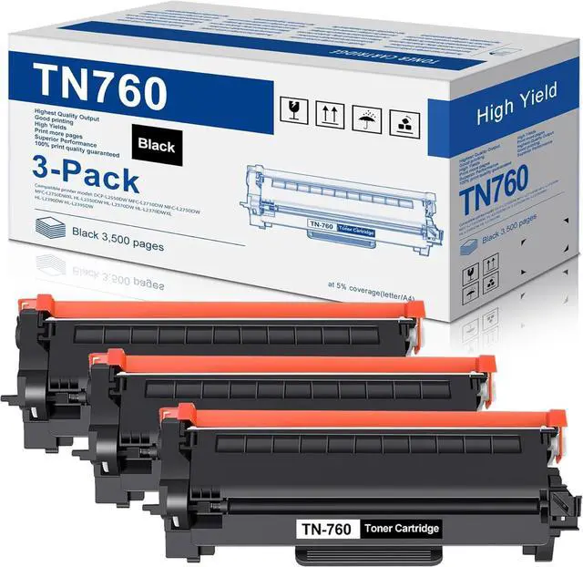 Package includes: 3-Pack TN760 High Yield Toner Cartridge Black