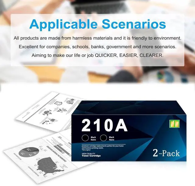 What's in the box: 2 new 210A Black Toner Cartridge (with Chip)