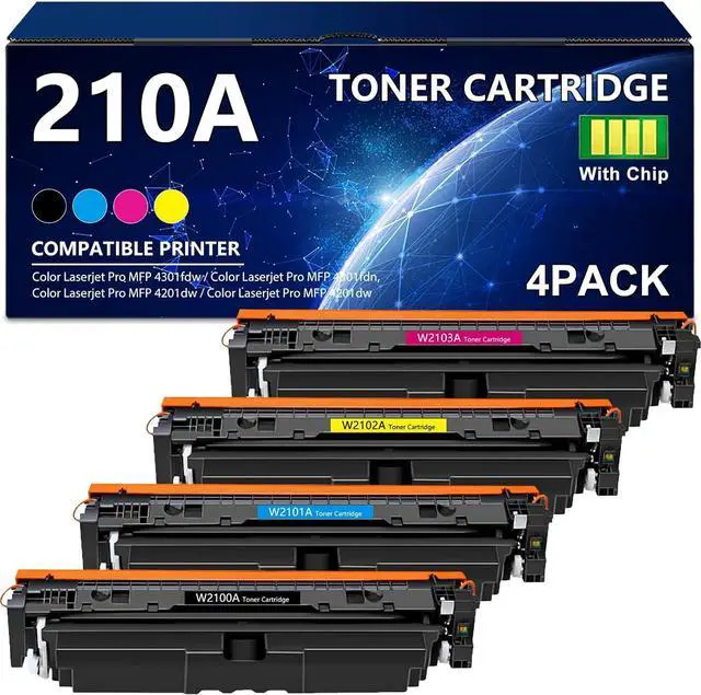 • What's in the box: 4-Pack of 210A high yield toner cartridges with new chips