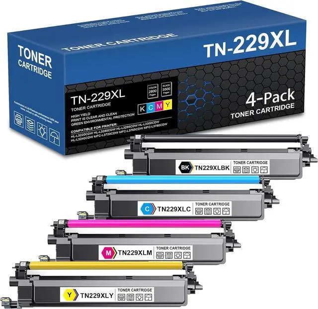 Package Contents: 4 Pack TN229 TN229XL Toner Multi-Color (Black, Cyan, Magenta, Yellow)