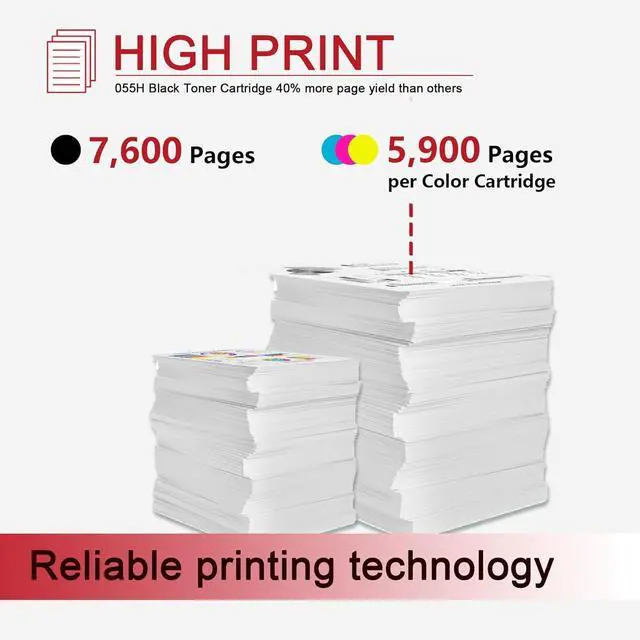 Page Yield: Up to 7,600 pages per 055H black toner and up to 5,900 pages per 055H color toner at 5% coverage (Letter/A4)