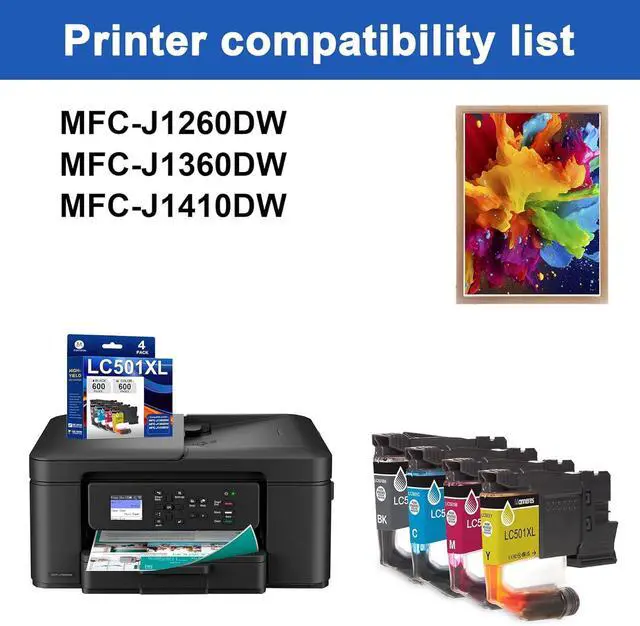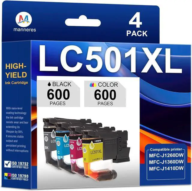 Package Included: 1 x Black LC501XL ink, 1 x Cyan LC501XL ink, 1 x Magenta LC501XL ink, 1 x Yellow LC501XL ink