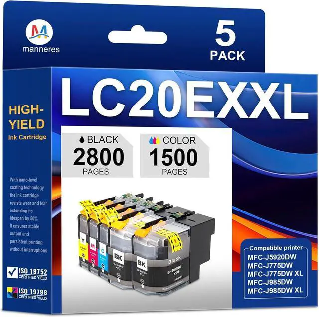 Package Contents: 2 x Black LC20E, 1 x Cyan LC20E, 1 x Magenta LC20E, 1x Yellow LC20E (Total 5 Pack)