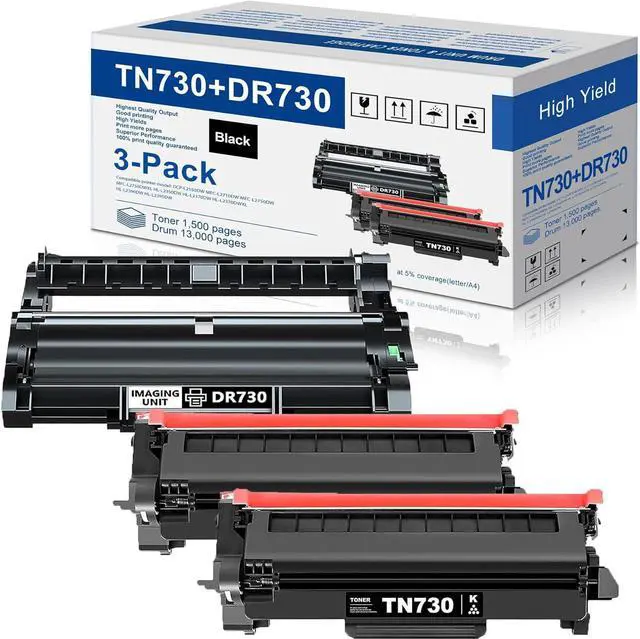 Package Contents: Total 3 PACK, 2 x TN730 Black and 1 x DR730 Drum Unit