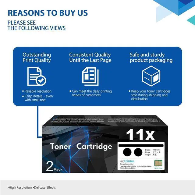 Quality Guarantee: Each of 11X Toner is tested according to strict inspection standards, automated technology is adopted, and each process is strictly digitally controlled to manufacture high-quality toner reload kit carefully