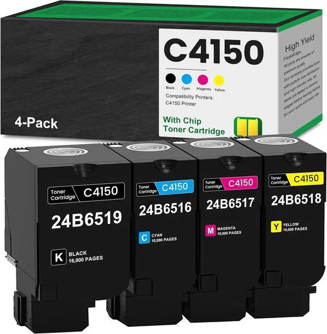 [4-Pack C4150 Cartridge Includes] - 24B6519 black toner cartridge x 1, 24B6516 cyan toner cartridge x 1, 24B6517 magenta toner cartridge x 1, 24B6518 yellow toner cartridge x 1