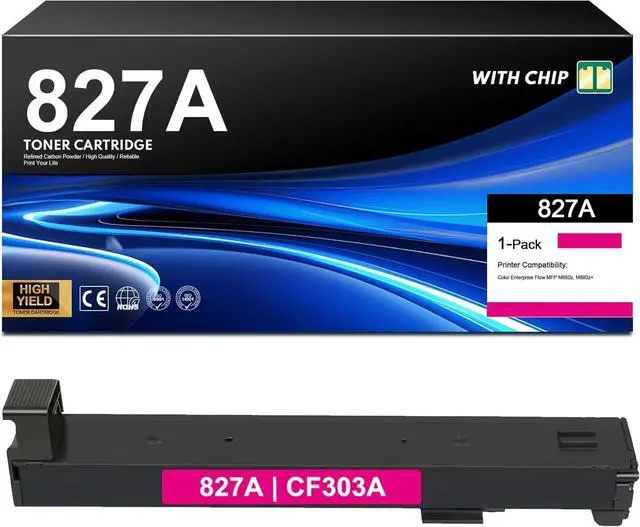 With Chip: 827A Toner Cartridges already with Chip, help you get away from the difficult problem---transfer the OEM chip to 827A