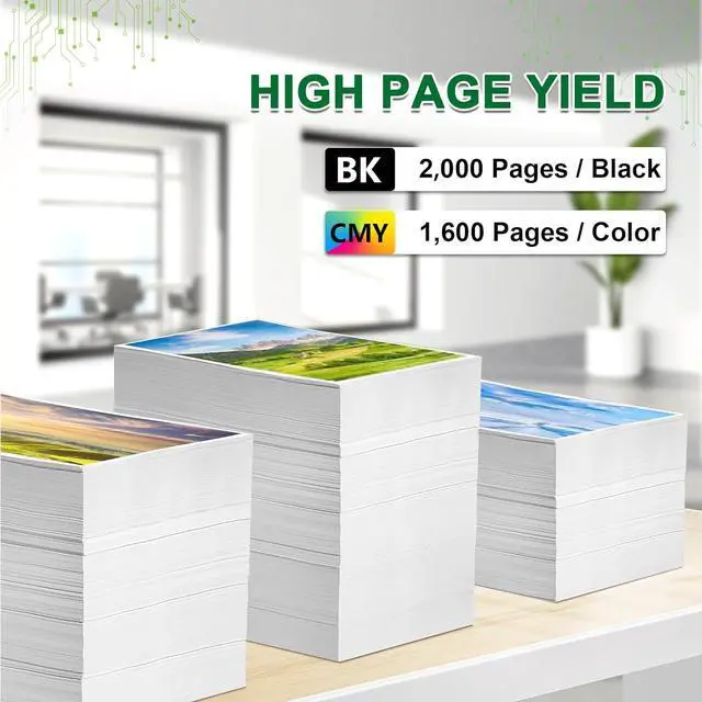 Large Cartridge Capacity: 2,000 Pages per black cartridges, 1,600 Pages per color cartridges (A4 paper at 5% coverage )