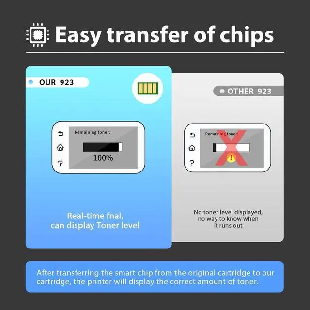 This is a chip-free 923 Ink Cartridges Black & Color Combo Pack Replacement for HP 923 Ink Cartridge