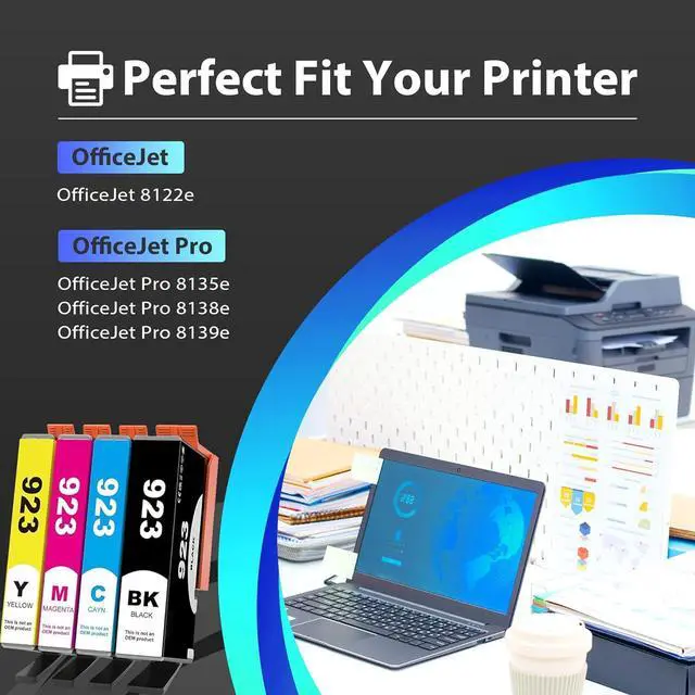This cartridge works with: OfficeJet 8122e; OfficeJet Pro 8135e, 8138e, 8139e Printer