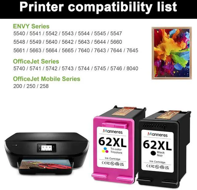 Package contents: 2 Pack-(62XL Tri-color / 62XL Black) Ink Cartridges