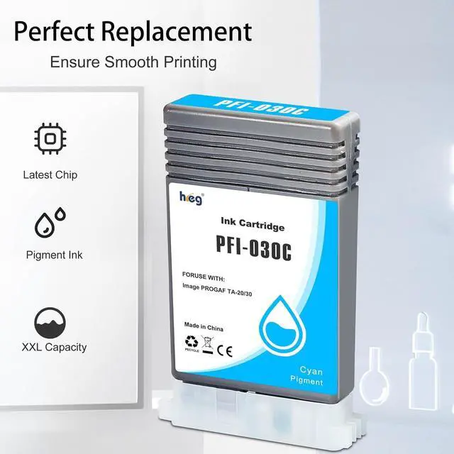 Good Performance: Enjoy good printing results with our HEG PFI-030 Pigment Ink Cartridge. Specially designed for ImagePrograf TA-20 and TA-30 printers, our ink ensures vibrant colors and sharp details on every page.