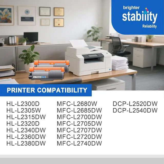 Printer model:Compatible for brother tn630 toner cartridge black HL-L2300D HL-L2305W HL-L2315DW HL-L2320D HL-L2340DW HL-L2360DW HL-L2380DW MFC-L2680W MFC-L2685DW MFC-L2700DW MFC-L2705DW MFC-L2707DW MFC-L2720DW MFC-L2740DW DCP-L2520DW DCP-L2540DW Printer