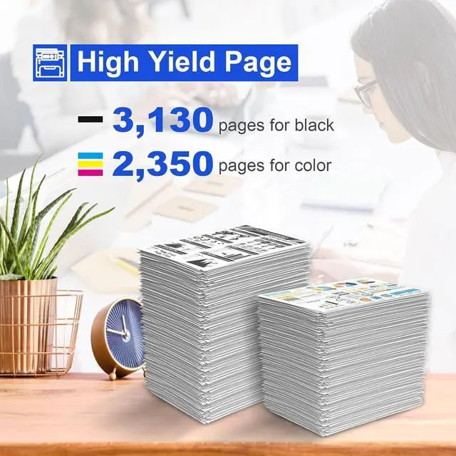 Page Yield: Estimated lifetime print yield of 3130 pages per black and 2350 pages per color cartridges(Letter/A4, at 5% Coverage)