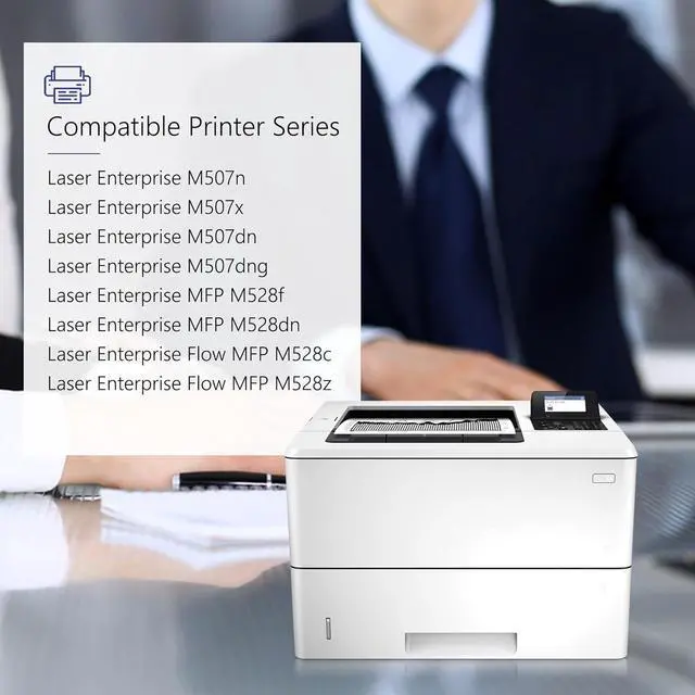 This cartridge works with: Laser Enterprise M507n M507x M507dn M507dng; MFP M528f M528dn; Flow MFP M528c M528z Printer
