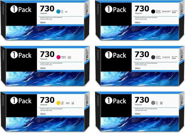 Package Include: 6-Pack P2V68A P2V69A P2V70A P2V71A P2V72A P2V73A 730 Ink Cartridges (MK/PK/G/C/M/Y)