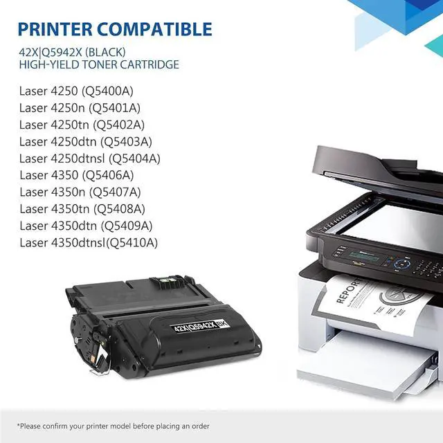 This cartridge works with: Laser 4250 4250n 4250tn 4250dtn 4250dtnsl 4350 4350n 4350tn 4350dtn 4350dtnsl Printer