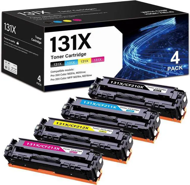 Package Contents: 4-Pack 131X Toner Cartridges (1Black CF210X Toner, 1Cyan CF211X Toner, 1Magenta CF213X Toner, 1Yellow CF212X Toner)