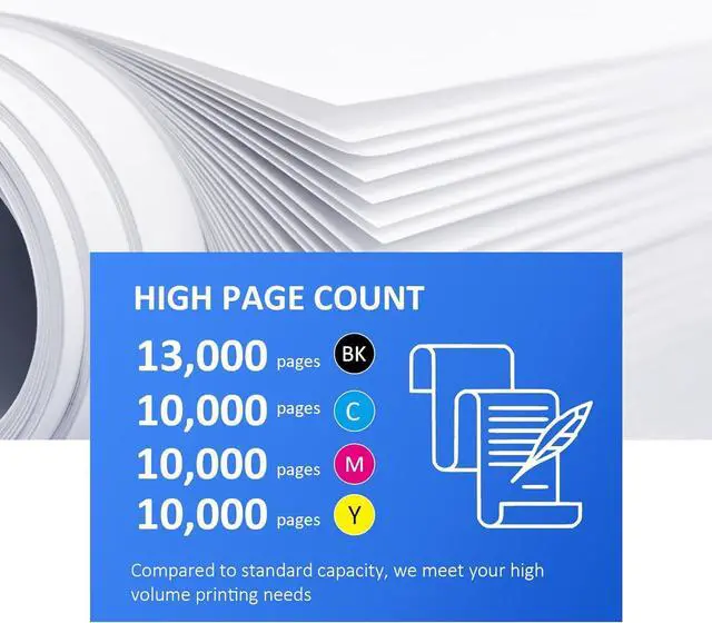 Page Yield: 13,000 Pages (508X Black Toner) and 10,000 Pages (508X C/M/Y Toner) at 5% coverage (Letter/A4)