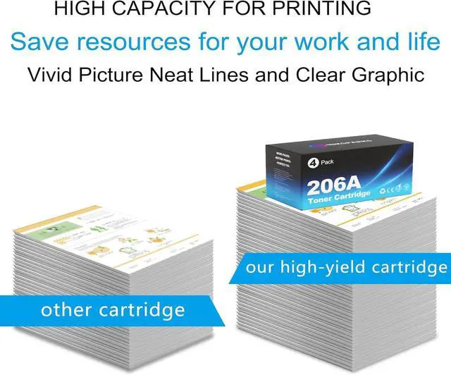 High Yield: Up to 1,850 pages for 206A black toner cartridge and 1,750 pages for 206A Cyan/Magenta/Yellow toner cartridge