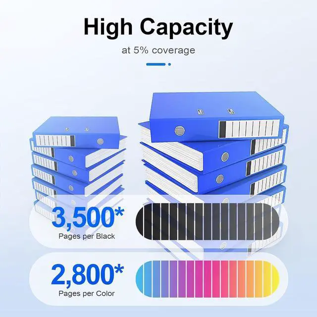 Cartridge yield (approx.): Page Yield: 3,500 pages per Black toner cartridge, 2,800 pages per Color toner cartridge at 5% coverage (Letter/A4)