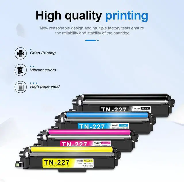 What's in the box: new TN227 Toner Cartridges 4-Pack (1Black/1Cyan/1Magenta/1Yellow) (with Chip)