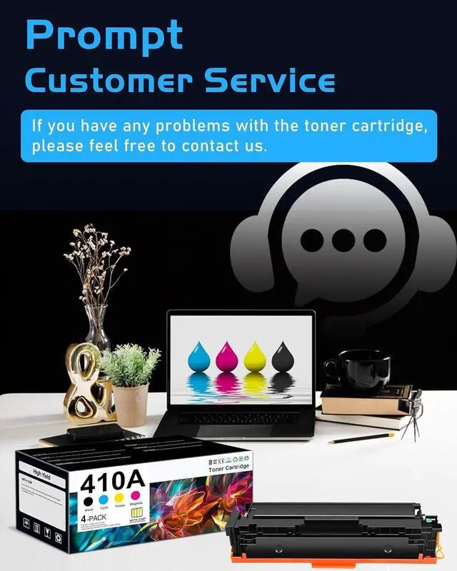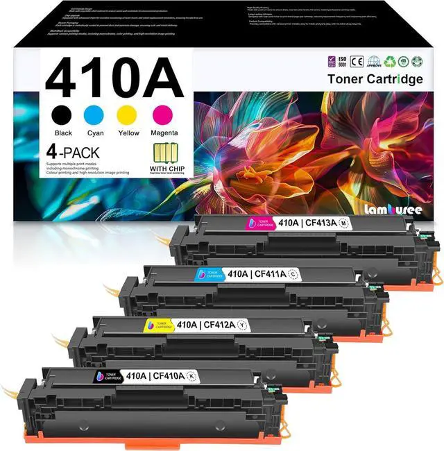 Complete 4-piece set: Includes 410A-Black, Cyan, Yellow and Magenta toner cartridges for full-colour printing, ensuring that every page prints clearly and vividly