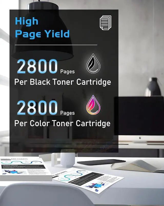 High-quality printing results: Each toner cartridge delivers more pages per cartridge, reducing the frequency of replacement for high-volume printing needs and significantly lowering the cost per page. Printing text is clear and sharp, and colours are vibrant and true to life, making it suitable for printing professional documents, reports, promotional materials and more.