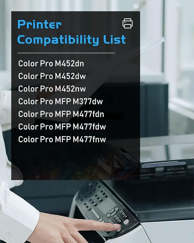 Compatible Models: Color Pro M452dn, M452dw, M452nw; Color Pro MFP M377dw, M477fdn, M477fdw, M477fnw Printers