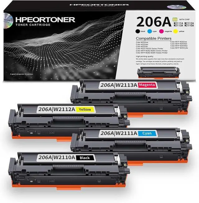 Package Included: 1 Pack 206A | W2110A Black, 1 Pack 206A | W2111A Cyan ,1 Pack 206A | W2112A Yellow Toner,1 Pack 206A | W2113A Magenta Cartridge.