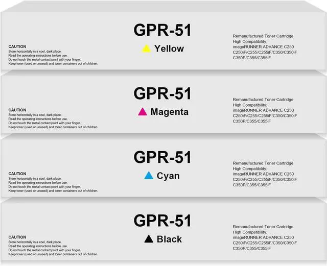 Packing List: 1xBlack, 1xCyan, 1xMagenta, 1xYellow 4-Pack GPR-51 Toner Cartridge (8516B003AA 8517B003AA 8518B003AA 8519B003AA)