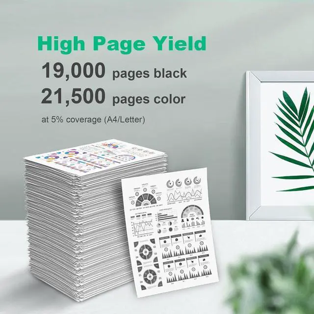 High Yield: 19,000 pages per Black, 21,000 pages per Color at 5% coverage of letter/A4.