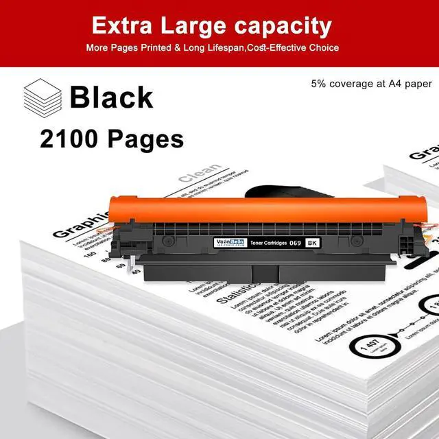 Page yield:Up to 2,100 pages per Black toner for 069 based on 5% coverage, Letter/A4