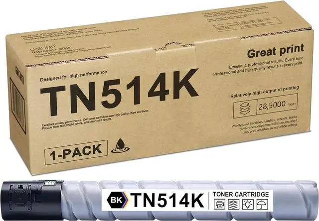 Package includes: 1 Pack Black TN514K TN514 High Yield Toner Cartridge (A9E8130)