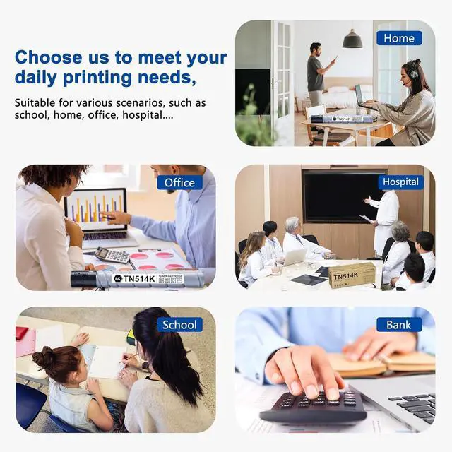 Outstanding Advantages: Our TN514K and TN514 toner cartridges offer outstanding reliability, easy installation and use, clear and stable printing results, and deep black tones.