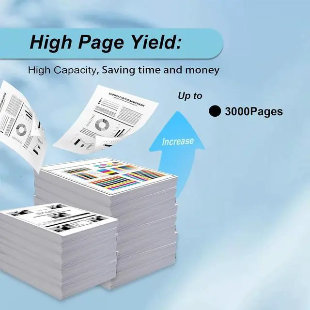 High Yield: up to 3000Pages, at 5% coverage (letter/A4), High-yield cartridges are more cost-effective andcontain more pages than standard ones, making them perfect for high-volumeprinting