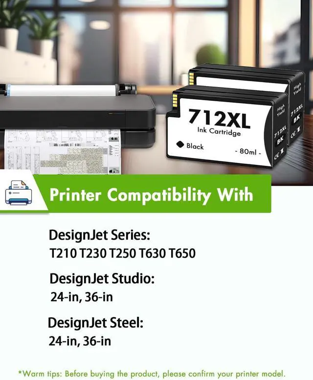 Professional Output: The 712XL high-yield black ink cartridge delivers crisp architectural text, smudge-proof lines, and deep blacks. Ideal for blueprints, presentations, and contracts