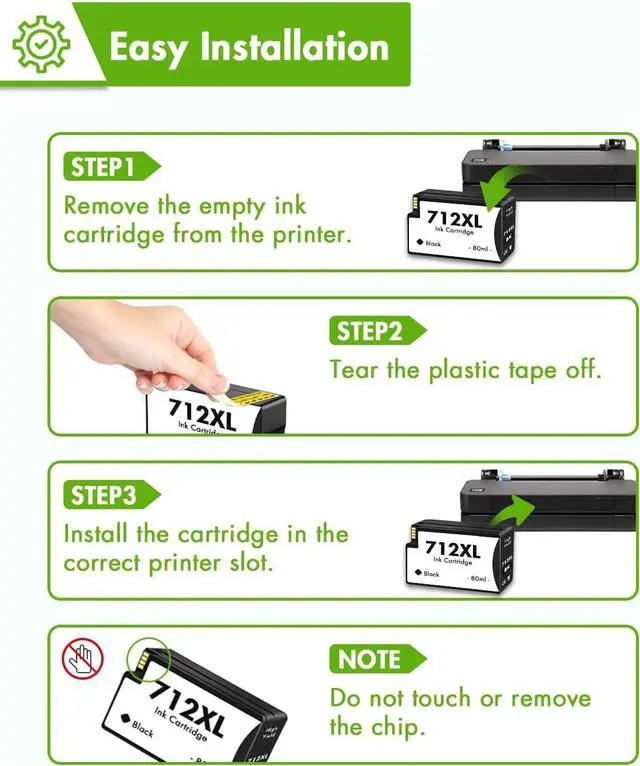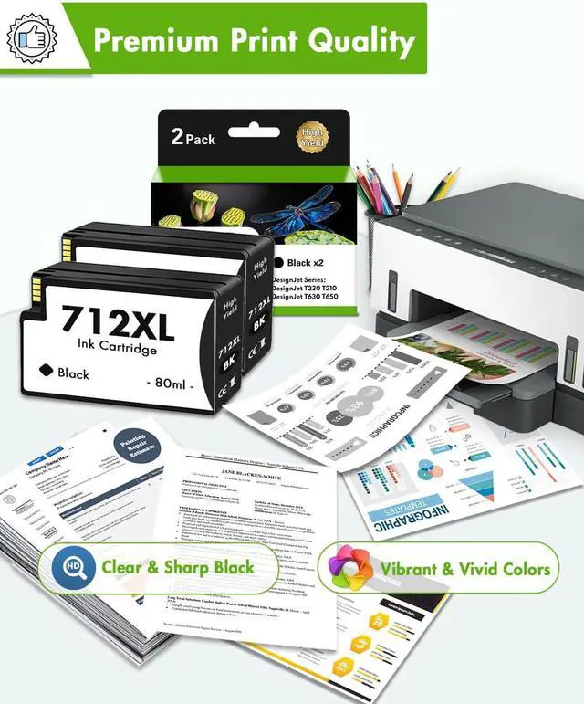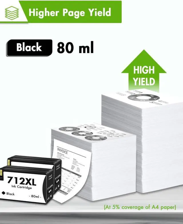 High-Yield Ink Supply: 80ml for 712XL black ink cartridges (at 5% coverage of A4 paper). Get more prints per cartridge and reduce the frequency of replacements